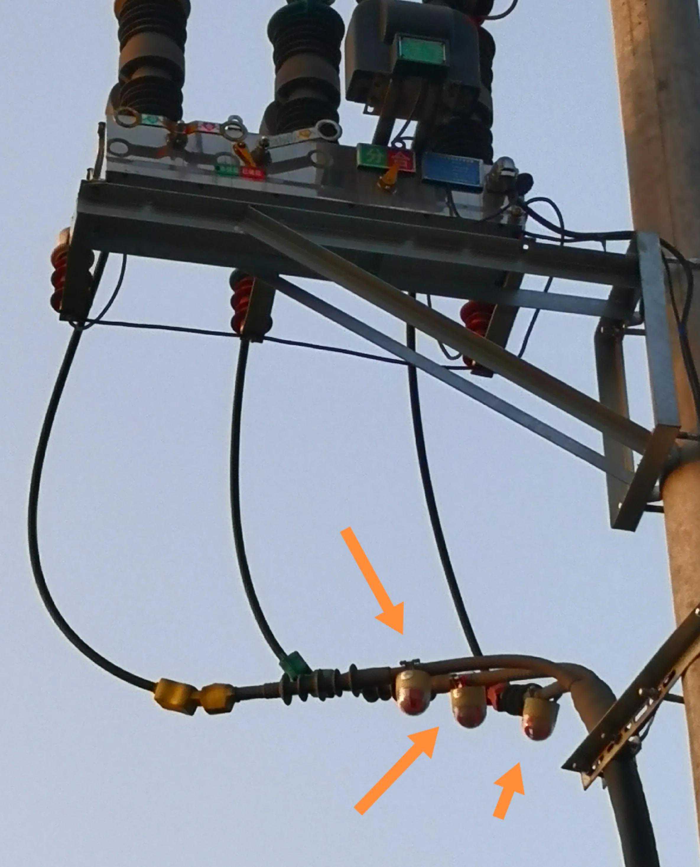 10KV线路故障指示器安装在10KV架空电缆的起点或分支处,变配电房内外10KV电缆接头上、变压器进线的电缆头处也能看到它的身影。它是一个独立的器件,通过金属环套装在电缆的三相电线上,通常一相电线套装一只。参见图2和图3。