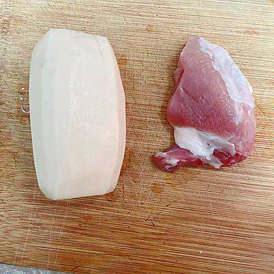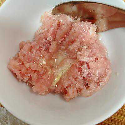3、瘦肉剁成末,加1.5克盐和1.5克鸡精、1汤勺水,搅拌均匀