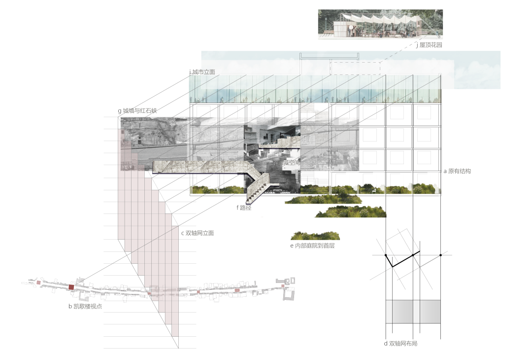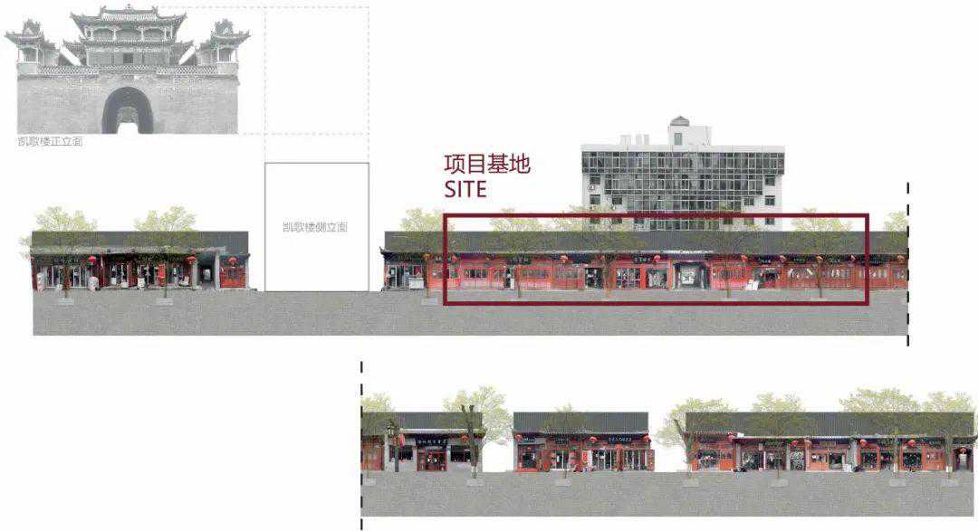 ▲拼贴立面分析:凯歌楼、古城大街与原招待所©STUDIOQI建筑事务所