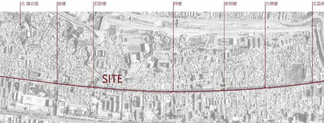 ▲场地视觉关系:凯歌楼、沿街房屋与原招待所©STUDIOQI建筑事务所