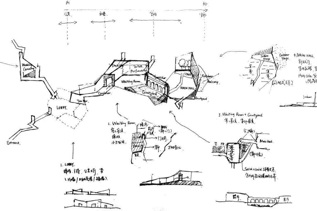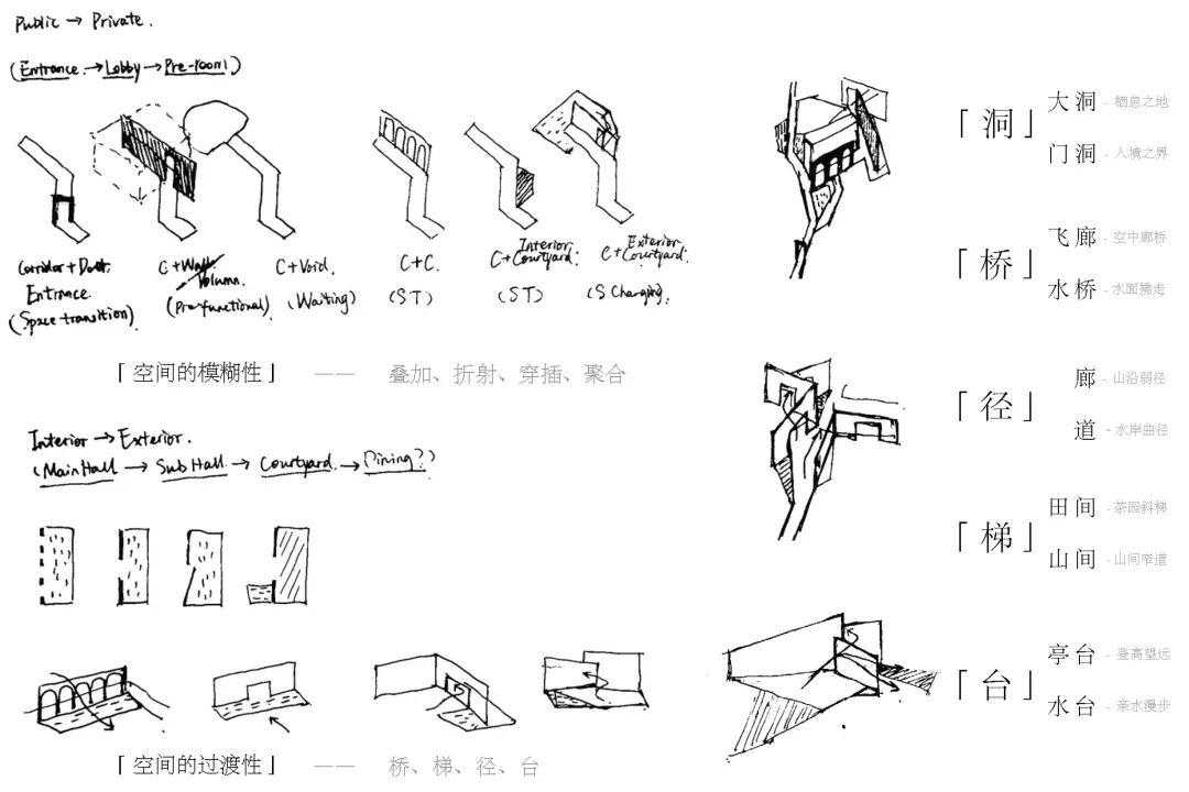 ▲草图:涵指化的空间元素演变©STUDIOQI建筑事务所