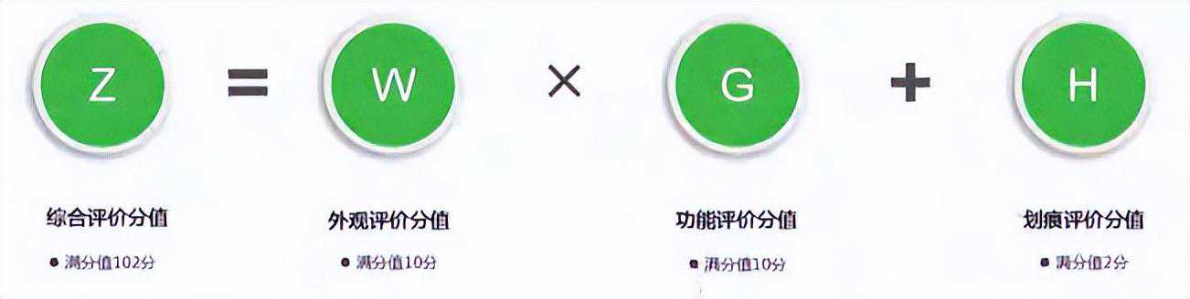 试验结束后,通过对试验评价的结果和数据进行分析、转换,根据不同指标的单项分值进行加权计算,得出样车的综合评价分值,分值越高代表耐腐蚀性能越好。外观和功能两个一级指标的单项分值均为10分,采用连乘法,划痕加分项指标分值为2分,综合评价满分值为102分。