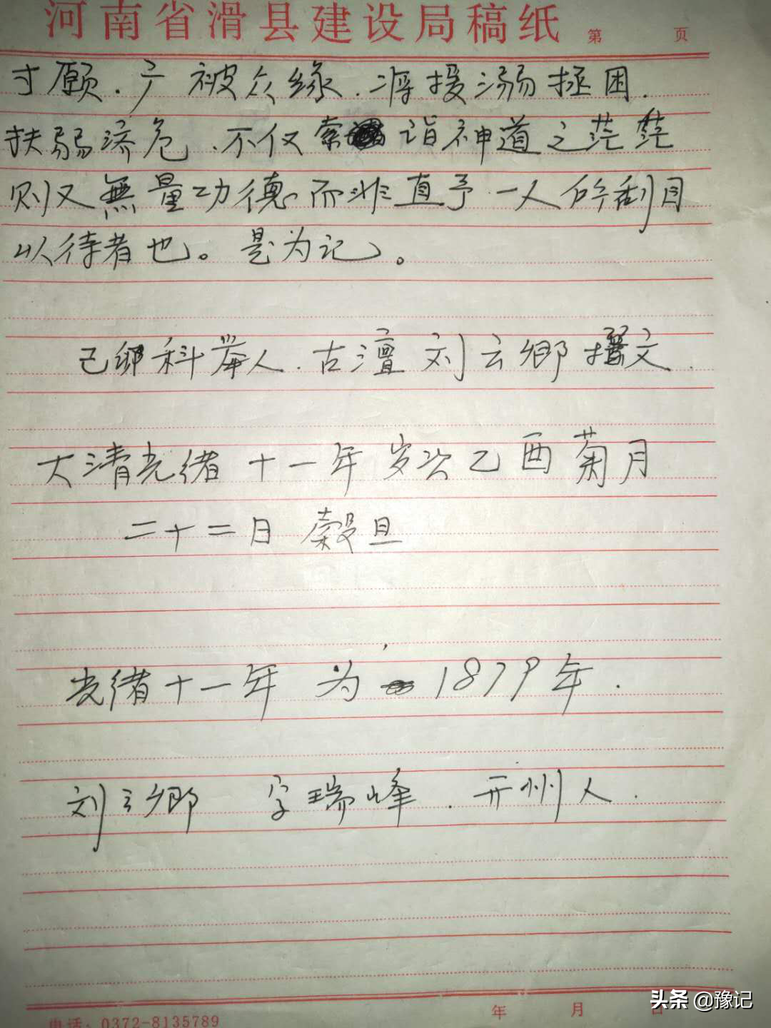后记:冯向杰老人年已八十,不顾年高体弱,为我抄录碑文,致谢。
