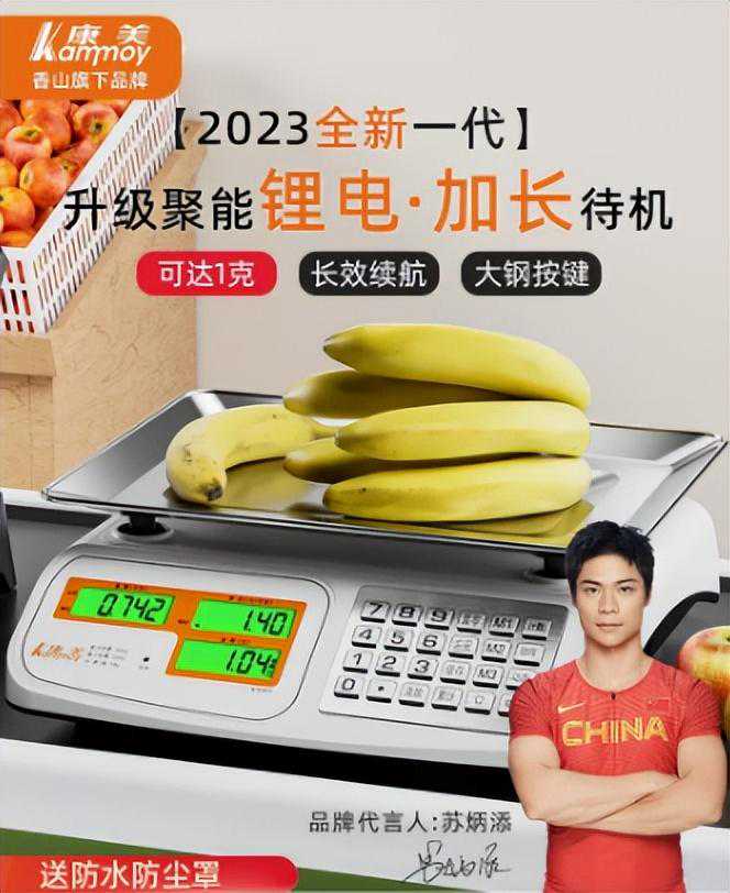 推荐理由:香山旗下金枼品牌,属于香山高端产品,品质肯定过关,其次有亚洲飞人苏神代言!在功能方面,一键智能精准防抖,锁定活物重量,专为生意人量身定制!高精度传感器,大容量蓄电瓶,高清双面显屏,面板防水,不锈钢秤盘,智能运算芯片,累计结算、智能计数、防抖锁定!