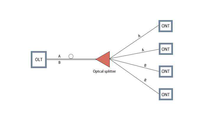 一个无源光网络包括一个安装于中心控制站的光线路终端(OLT),以及一批配套的安装于用户场所的光网络单元(ONUs)。在OLT与ONU之间的光配线网(ODN)包含了光纤以及无源分光器或者耦合器。PON根据其传输协议的不同又分为基于ATM的APON(ATMPON)、基于Ethernet的EPON(EthernetPON)、和基于GeneralFrameProtocol的GPON(GigabitPON)三种技术标准。