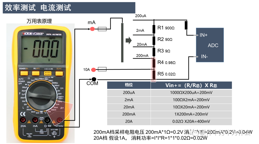 效率测试的设置:两个电流表,两个电压表。