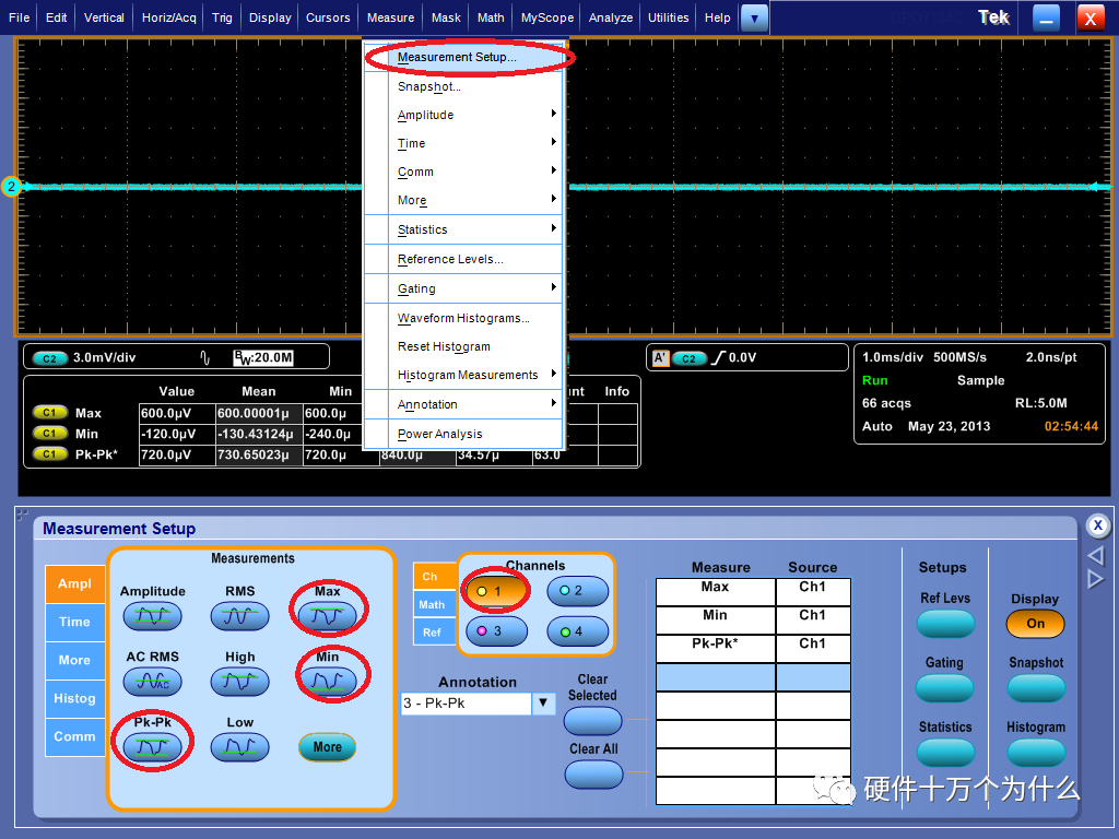 示波器电源纹波测试项设置