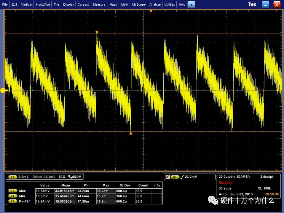 20MHz,读取示波器显示的输出电压峰-峰值即为输出纹波电压(包含毛刺在内