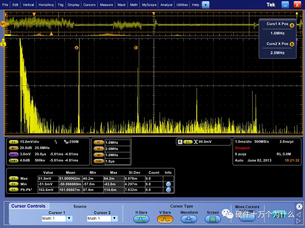 示波器pk-pk、max、min的区别示波器上pk-pk、max、min统计的是当前屏幕上波形的峰峰值、最大值、最小值。有时候会出现pk-pk(max-min)的现象,因为max或者min值没有在同一个采样周期内出现。
