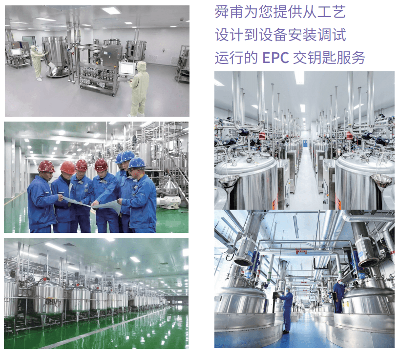 北京舜甫科技集团具有食药领域多年丰富的建厂经验,打造EPC总承包全流程的服务体系,满足需求方从配方研发,工艺包设计、工程设计、工程交付、运营托管、培训售后、建厂投产各模块业务的交钥匙工程。