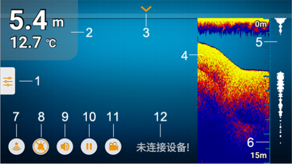 深度温度显示区用于显示当前水域的深度和温度