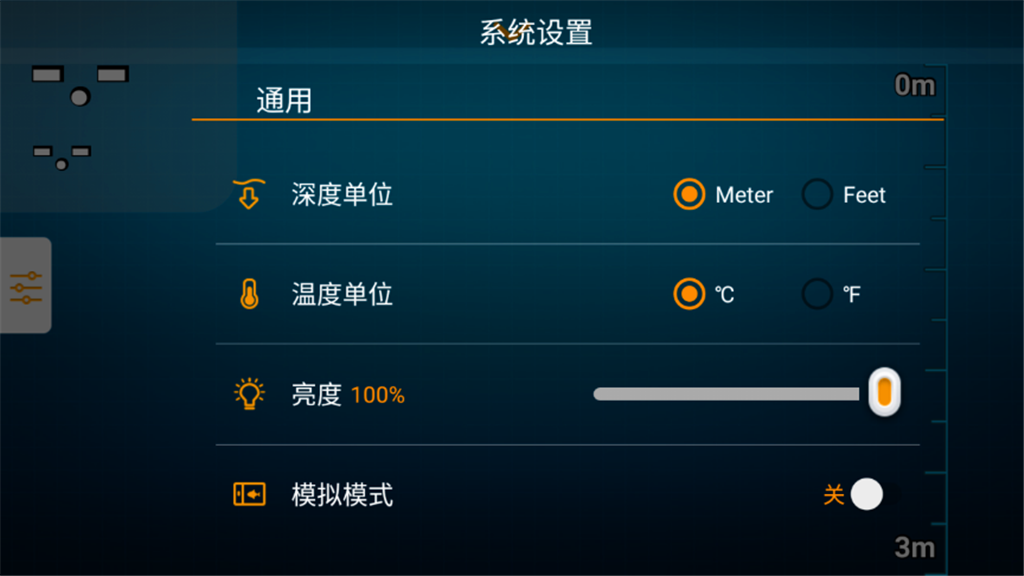 深度单位用于设置主界面深度的单位,可选米(Meter)或者英尺(Feet)