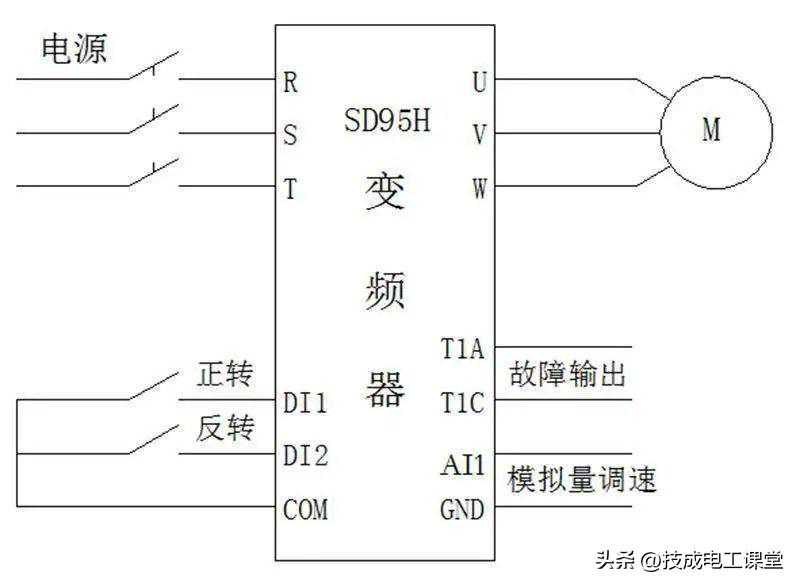 变频器控制电机的接线较为简单,跟接触器的接线差不多,三根主电源进线,然后出线给电机,但是其中的设置就有说道了,控制变频器的方式也多为不同。