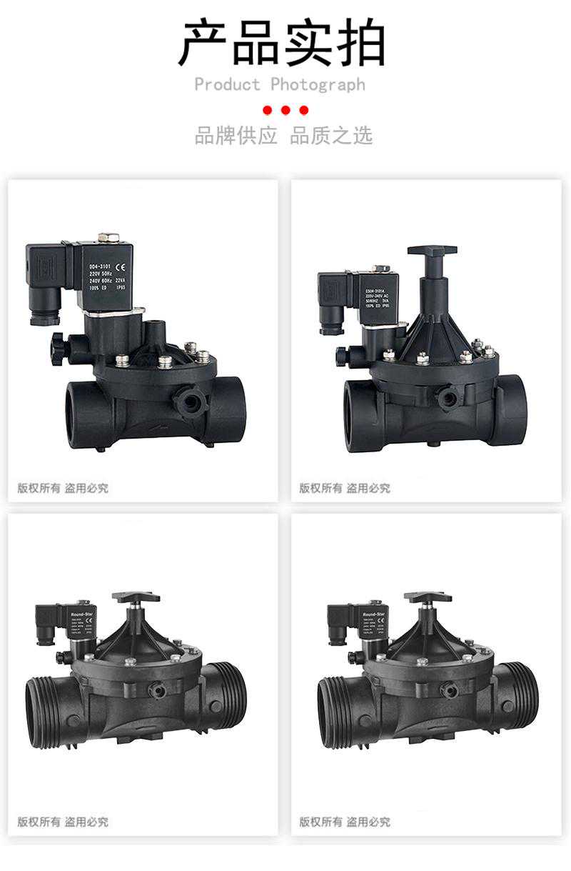 塑料电磁阀,在一些特殊的工作场所,和用在特殊介质的电磁阀,例如有酸碱性介质的工作环境,黄铜和不锈钢材质的电磁阀产品相比塑料电磁阀,容易被腐蚀,所以用特殊材质做成的塑料电磁阀在耐腐蚀性能上特别优秀,该系列产品适应于适宜饮用水、各类未经处理的污水、雨水、海水及各种酸碱盐溶液、有机溶剂。