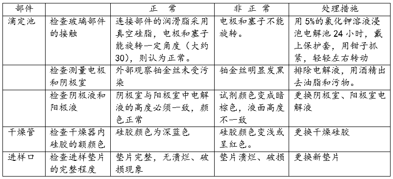 由于库仑-卡费休滴定全部在滴定池内完成,是完成测量的关键部件。班组人员首先按照说明书的标示,对测量电解池进行了拆解,结果发现: