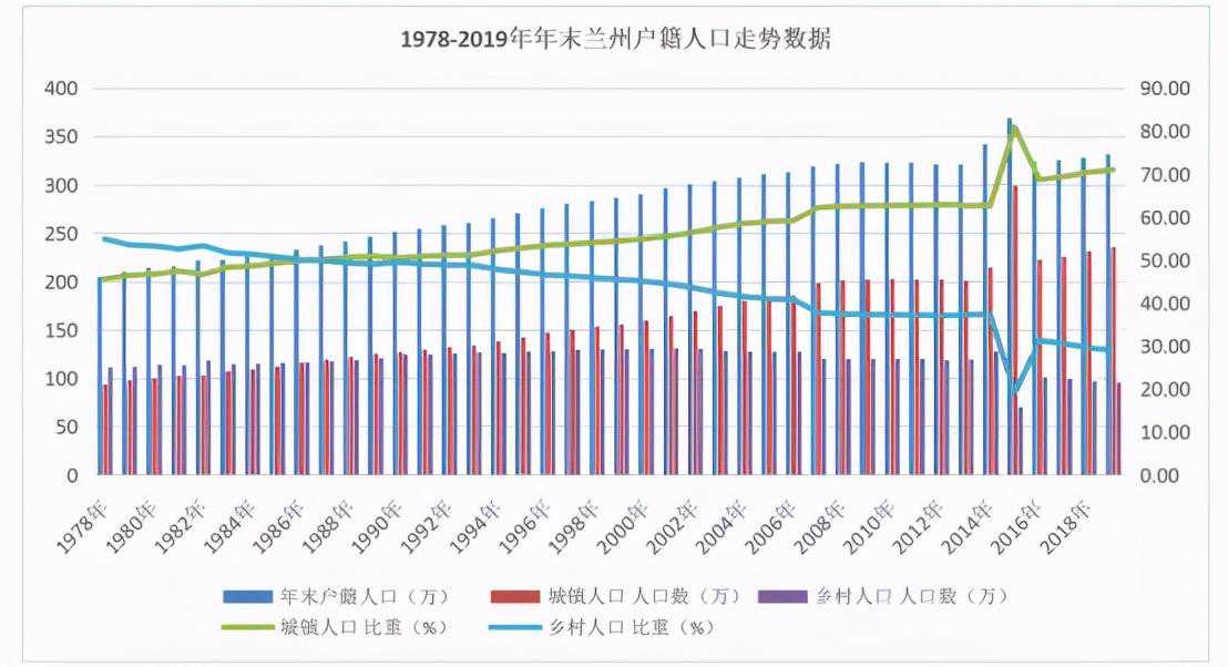 分析近四十年兰州人口的数据,我们看到兰州的人口增长一直比较平缓。这些年,兰州的城市吸引力无疑是在下降的,所以接下来几年人口猛增的概率也是比较小的。