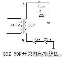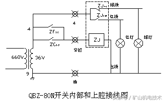 矿用调度小绞车是用来调度车辆及进行辅助牵引作业的一种绞车,一般用于井下水平巷或斜巷,在不太长的距离内拖运矿车,也可用在采掘工作面拖运设备,调度绞车常用的型号比较多,如、JD-22、JD-25、JD-40型等,绞车多数使用QBZ-80/660(380)N型矿用隔爆真空可逆电磁起动器。该起动器在降低能耗,保证安全发展方面实现了特定的价值;下面以QBZ-80/660(380)N型开关为例介绍绞车的声光信号几种接法。