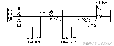 ③、井底和各中段车场及需用设声光信号和辅助信号的地方,可按此图接线。