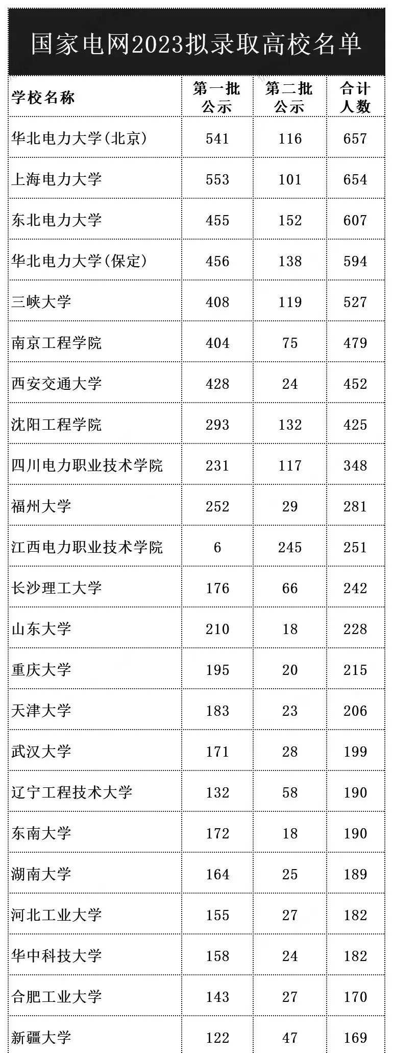2023年一批录用于国家电网公司190人,二批录用于国家电网公司66人。