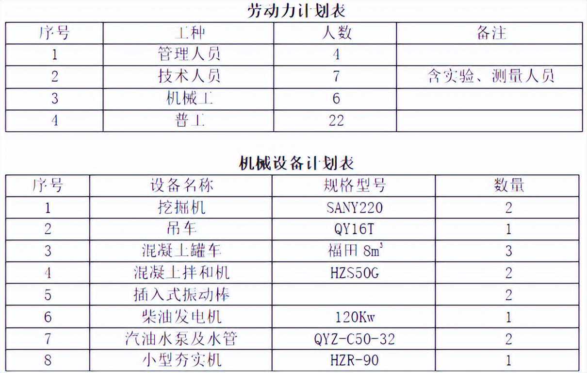 2、劳动力及机械计划