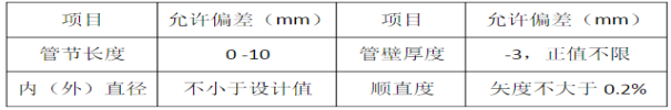 (3)管节各部尺寸不得超过下表规定的允许偏差。钢筋混凝土管成品允许偏差