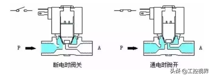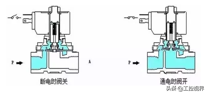 原理:常闭型通电时,电磁线圈产生电磁力把敞开件从阀座上提起,阀门打开;断电时,电磁力消失,弹簧把敞开件压在阀座上,阀门敞开。(常开型与此相反)
