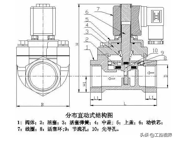 有常闭型和常开型二种。常闭型断电时呈关闭状态,当线圈通电时产生电磁力,使动铁芯克服弹簧力同静铁芯吸合直接开启阀,介质呈通路;当线圈断电时电磁力消失,动铁芯在弹簧力的作用下复位,直接关闭阀口,介质不通。结构简单,动作可靠,在零压差和微真空下正常工作。常开型正好相反。如小于φ6流量通径的电磁阀。
