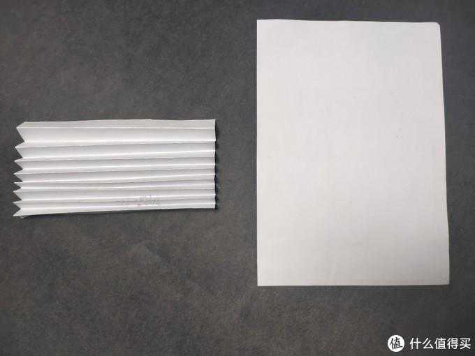所以滤纸的折数越多,高度越厚,展开面积就越大,效果就越好。因为通过折叠,获得大的滤纸面积和一定的纵向厚度,有两个显而易见的好处,通过A4纸折叠举个例子。