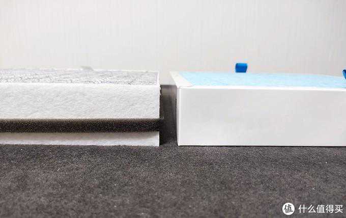 原厂滤网构边框构造为软边条,在用的第三方则是硬纸框,与设备结合更为紧密,相对来说密封性更好。