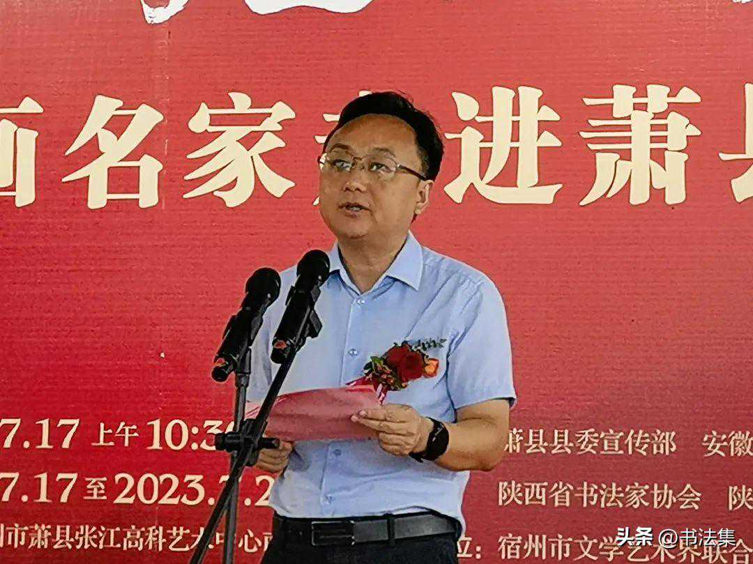 7月17日上午10:30,由萧县县委宣传部、安徽省书法家协会、陕西省书法家协会、陕西省书画院主办,宿州市文联、萧县文联协办,天瑞集团萧县水泥有限公司、西安三清文化艺术品有限公司、陕西汇文出版传媒有限公司承办的魅力墨乡——全国书画名家走进萧县书画创作精品展在安徽省宿州市萧县张江高科艺术中心南厅开幕。