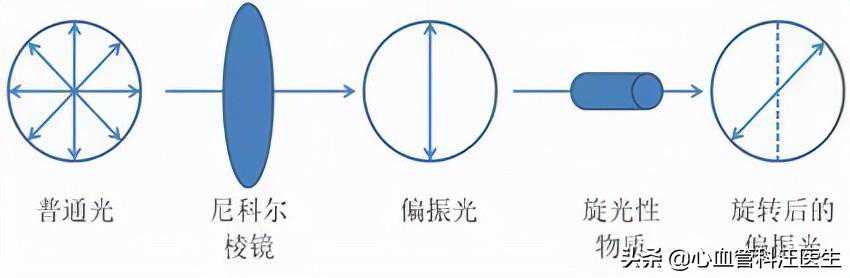 当偏振光穿过具有“旋光性”的药物晶体时,其振动平面会发生一定角度的旋转,如果偏振光的振动平面向左(逆时针)旋转,则该药物称为“左旋”,向右偏转则称为“右旋”。