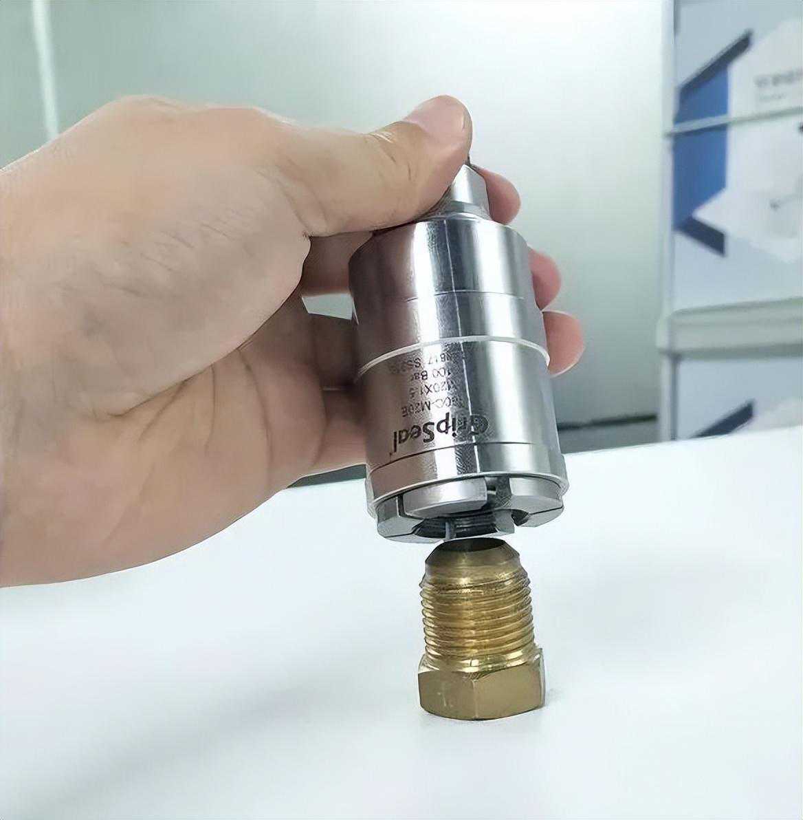 自锁式快速密封接头常用方式是手握住接头尾部,核对好相应的管件和接头型号,连接好相应的测试流体管或封堵头。然后将接头前端密封圈对准管件端面,稍微用劲平行推入。接头内部结构受力瞬速反应并运作,会自动锁紧,密封连接完成即可开始通入测试流体,进行相关测试。测试完成后,先卸掉通入的测试流体,单手握住接头滑套部位(带网花状),拔出接头即可断开连接,完成整个测试,继续进行下一个产品检测。