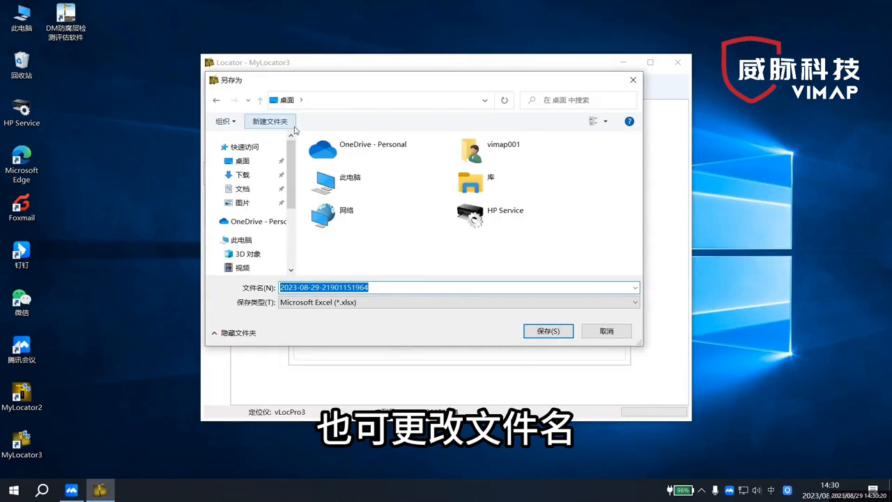 ·根据需要选择存储路径也可更改文件名,比如改为管线仪数据。文件保存的类型有很多种,根据需要选择合适的文件格式,这里就选择xlsx.格式,单击保存。
