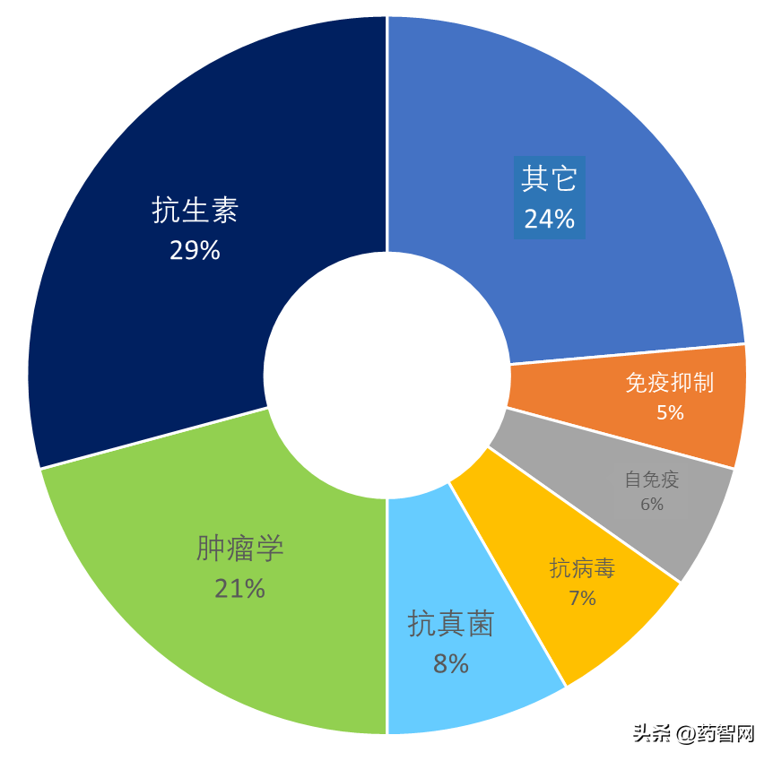 图4.上市大环药物适应症分布
