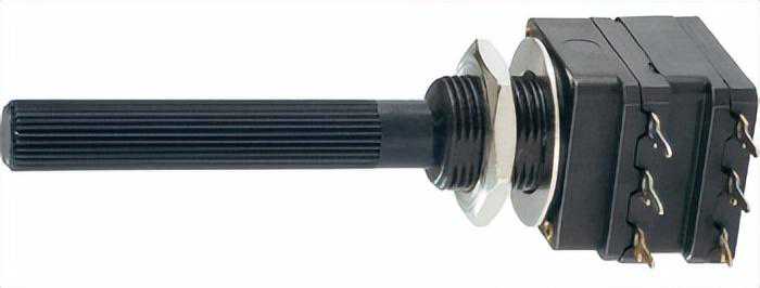 这种类型的电位器有两个终端触点,在这两个终端触点之间以半圆形的方式放置了一个均匀的电阻。该装置还具有一个中间端子,该端子通过与旋钮相连的滑动触点连接到电阻。通过旋转旋钮可以移动半圆形电阻上的滑动触点。电压取自电阻端触点和滑动触点之间。电位器也简称为POT。POT还用于变电站电池充电器,以调节电池的充电电压。在需要平滑电压控制的情况下,旋转式电位器还有更多用途。