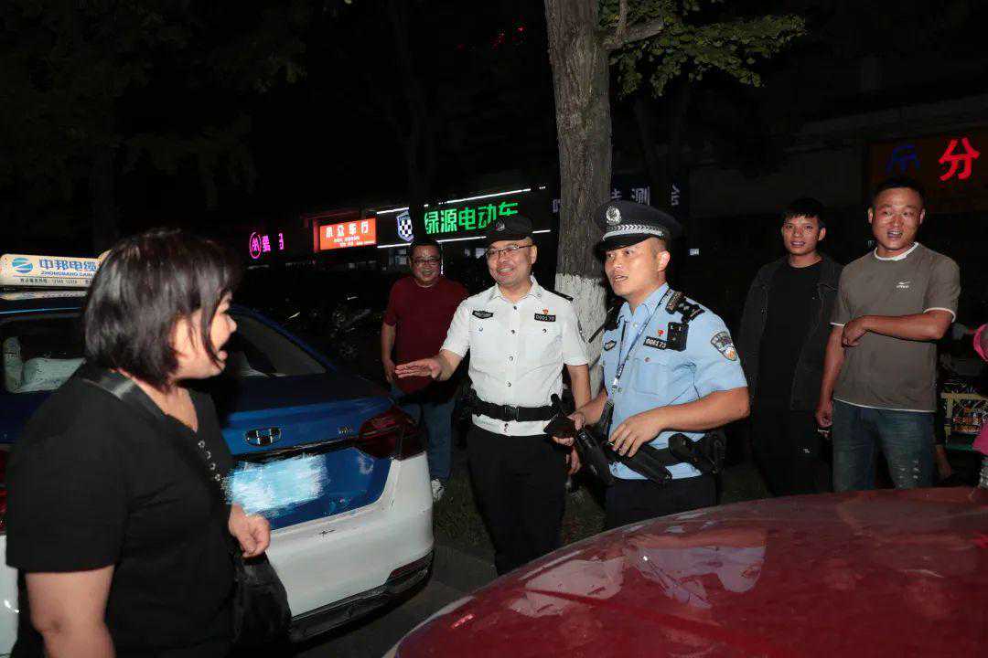 疏散围观群众、疏导车辆正常通行、稳控涉事双方情绪,杨扬与派出所民警分工协作,快速恢复现场正常秩序。当得知涉事双方因摊位问题发生争吵后,民警联系城市综合行政执法部门协调处理,促使双方握手言和。