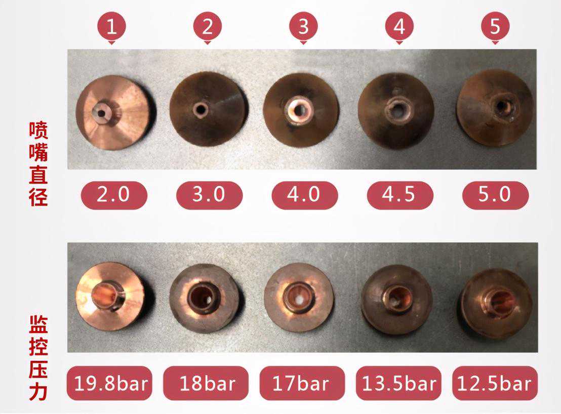 注:固定流量下,不同喷嘴尺寸,监控气压