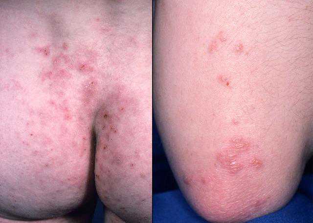 (图4,臀部和肘部瘙痒性水疱,是为乳糜泻患者可见的疱疹样皮疹)