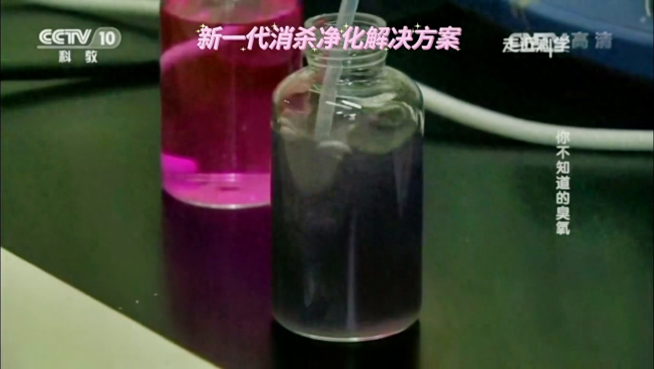 将臭氧注入到被污染的水中,在很短的时间内,臭氧就把红色的水变成了清水。这不是魔术,而是臭氧迅速降解了水中的有机物,达到了净化的效果,并且没有任何残留。因为臭氧在空气中和水中都不会停留,很快就分解成氧气了。