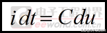 左边是通过电容的电流对时间的积分,意思就是电容在0~t这段时间内充或者放的电量,在国际单位制中单位是库仑,也就是安·秒。右边是du对时间的积分,这个积分结果可不是电压,而是在0~t这段时间内电压的增量Δu,也就是这段时间内电容两端电压的变化量。