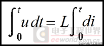 左边是电感两端的电压对时间的积分,但是物理学中并没有这么一个物理量。没办法,前人并没有考虑到另立一个物理量。但我们知道积分的结果在国际单位制中的单位是伏·秒,所以我们可以给这个积分起个名字叫伏秒积(它就相当于电容中电流对时间的积分,也就是电量,单位是库仑)。右边是di对时间的积分,这个积分结果可不是电流,而是在0~t这段时间内通过电感电流的增量Δ,也就是这段时间内电感中电流的变化量。