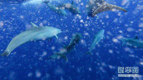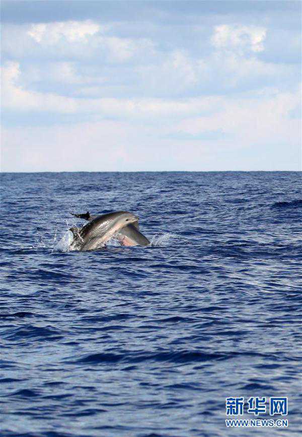 这是7月20日在南海某海域拍摄的弗氏海豚。新华社记者张丽芸摄