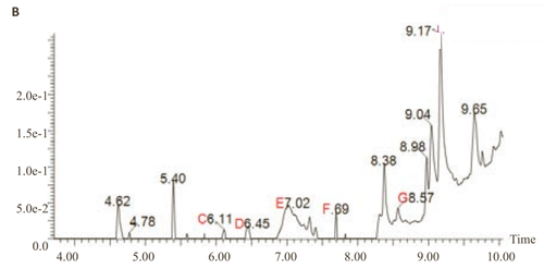 有人采用超高效液相色谱-质谱联用(UPLC/MS)技术,专门对新生牛和胎牛血清组分中活性成分进行了分析(见下图),发现胎牛血清明显多出组分C、D、E、F和G,而新生牛血清含有特有组分A和B。
