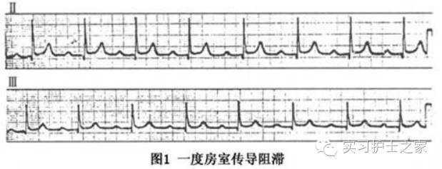 一度房室传导阻滞:每个心房冲动都传导至心室,但PR间期超过0.20s。房室传导系统的任何部位发生传导缓慢,均可导致PR间期延长。QRS波群形态正常者,房室传导延缓部位几乎都位于房室内结,极度少数为希氏束。
