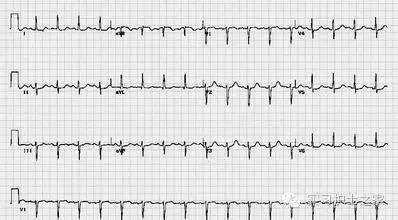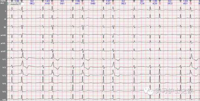 ①窦性心律:P波规律出现,P波在Ⅰ、Ⅱ、aVF、v4-v6联直立,aVR导联倒置。