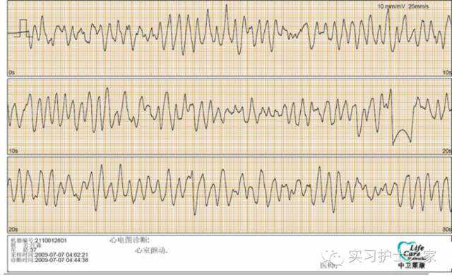 ①QRS-T波消失,呈大小不等,形态不同的心室颤动波,常由室扑转变而来,波幅0.5毫伏称粗波型心室颤动,100次/分者称快速型心室颤动,频率100次/分者称慢速型心室颤动.