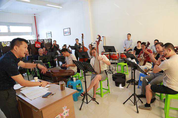 今年69岁的杨松海,每天早上在江边练习中阮两个小时。由于平时弹中阮,全部是主旋律,从来没有接触过声部,徐和昌老师一有空就对他进行一对一的魔鬼式训练指导。扬琴演奏员朱德强,利用每天上班前和下班后的时间,争分夺秒地到排练厅练习。低音大提琴演奏员沈亚君,之前未接触过曲谱,为了跟上大家的学习进度,自创了“靠数字打节拍”的方法,虽然方法不够专业,但足见她的刻苦用心。