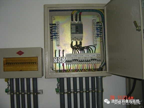 柜、屏、台、箱、盘的金属框架及基础型钢必须接地(PE)或接零(PEN)可靠;装有电器的可开启门,门和框架的接地端子间应用裸编织铜线连接,且有标识。金属导管与配电箱连接处必须做接地跨接,且各管路必须单独与汇流排或接地干线连接,不得串接。