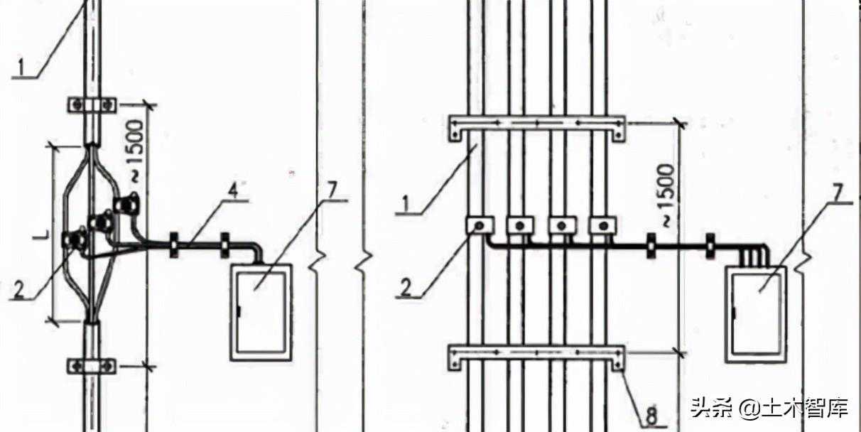 工艺说明:利用建筑物柱主筋作为接地引下线的每层用黄色油漆在引下线钢筋离地面0.3m处涂刷一圈,涂刷长度10cm。