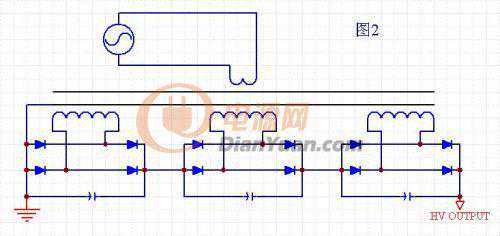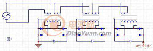 高压电源最主要的技术特点,就是在于输出电压很高。高的输出电压对很多方面提出了特别的要求——元器件耐压的要求、结构设计的要求、绝缘材料的要求等。与此同时,电路结构上也有异于通常的结构。通常对于输出10KV以下的电源,可以直接采用传统的各种拓扑结构。但是对于电压更高的电源,就要对电路结构作一些修改,以满足更高电压的输出。由于变压器初级部分的功率器件的耐压限制,一般驱动部分依然是传统的开关电源拓扑,对电路结构的修改,主要是集中在变压器以及后面的整流电路上。下面主要对这两部分进行讨论。